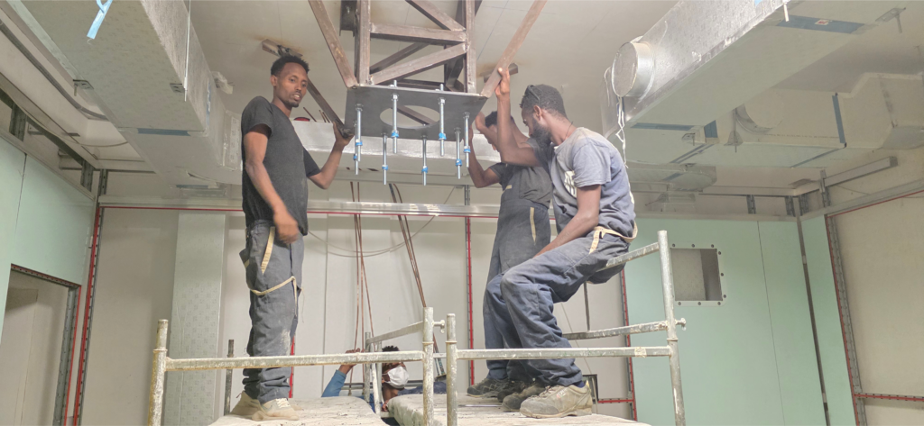 L’Ospedale Kidane Mehret di Adwa prosegue i lavori, che porteranno all’apertura delle nuove sale operatorie, al collocamento definitivo dei reparti allestiti temporaneamente in altri ambienti, e all’ampliamento dei posti letto (a fronte dei 42 attualmente a disposizione).